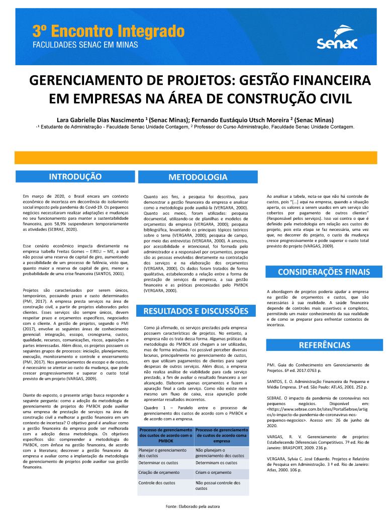 Trabalho acadêmico: 00_GERENCIAMENTO DE PROJETOS GESTÃO FINANCEIRA EM EMPRESAS NA ÁREA DE CONSTRUÇÃO CIVIL. UNIDADE CONTAGEM