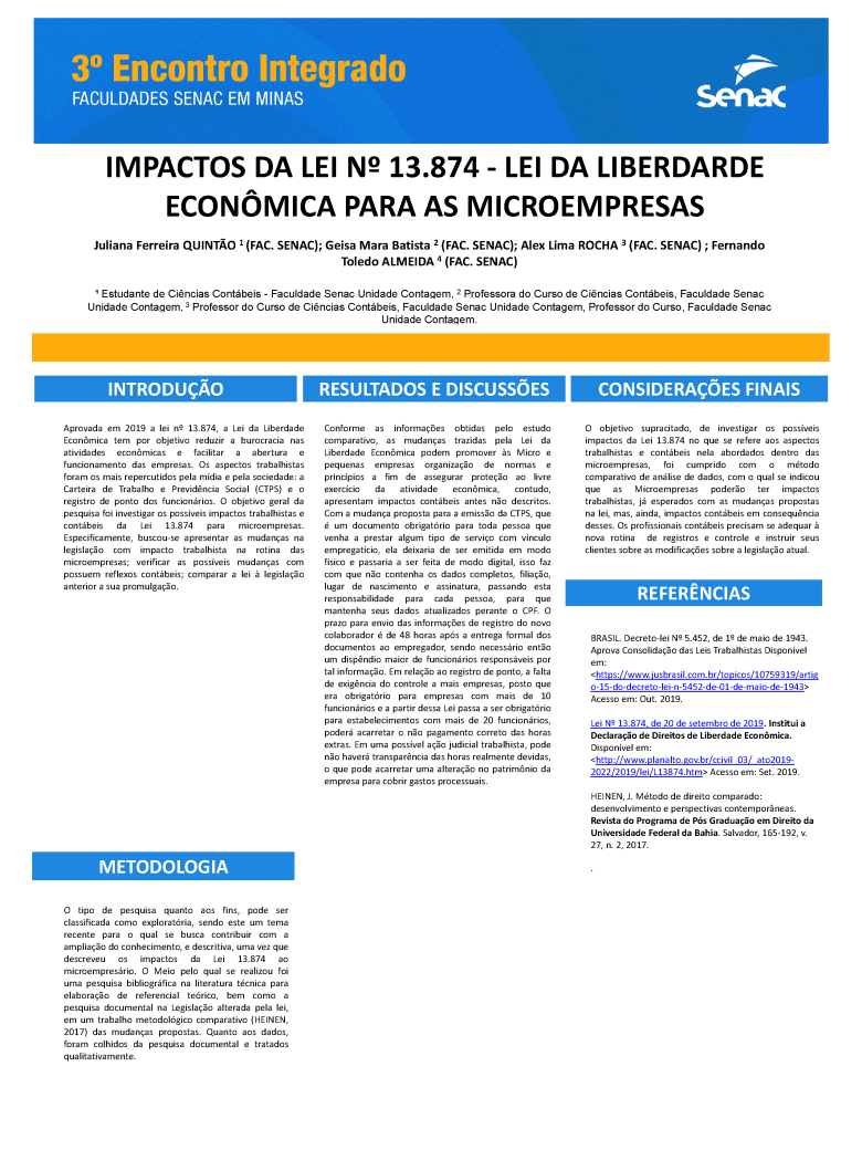Trabalho acadêmico: 00_IMPACTOS DA LEI 13.874 - LEI DA LIBERDADE ECÔNOMICA PARA AS MICROEMPRESAS. UNIDADE CONTAGEM