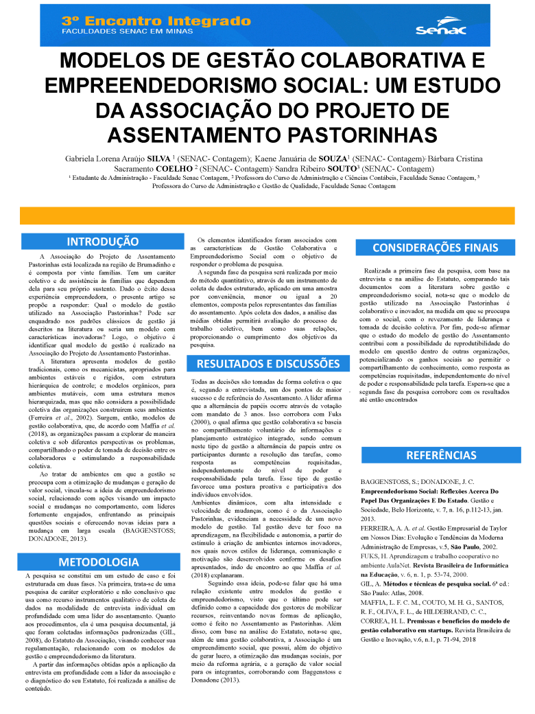 Trabalho acadêmico: 00_MODELOS DE GESTÃO COLABORATIVA E EMPREENDEDORISMO SOCIAL. UNIDADE CONTAGEM