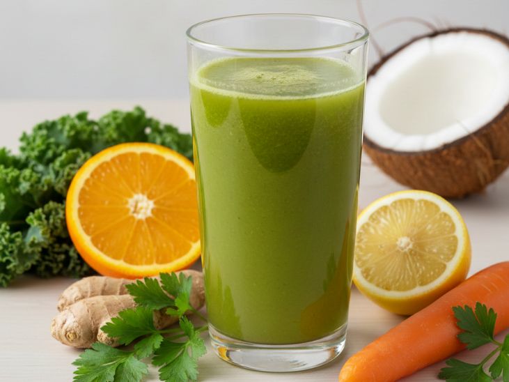Suco nutritivo para ajudar na recuperação - Joyce sugere um suco rico em nutrientes com couve, gengibre, maçã e água de coco.